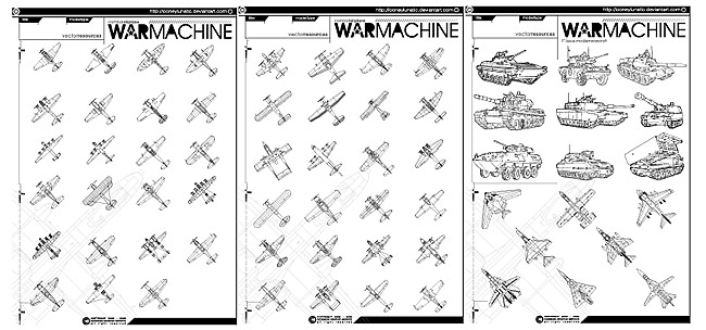 Location: Home > Vector > Other Vector > Line drawing fighter jets and tanks