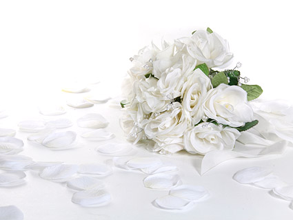 White rose petals and bouquets