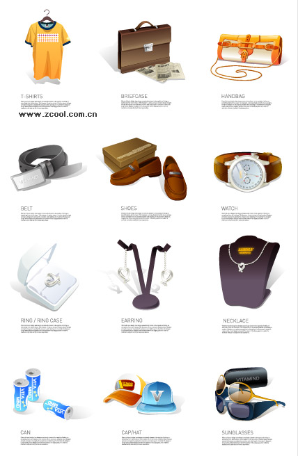 ai formats, including jpg preview, keyword: Vector icon, clothing, apparel, t-shirt, briefcase, women handbags, handbags, belts, shoes, watches, necklaces, jewelry, boxes, cans, beverage, drinks, hats, sunglasses, sunglasses, commodities, vector material