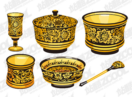 Location: Home > Vector > CHINA Vector > Classical pattern vector material Series -1 - golden utensils